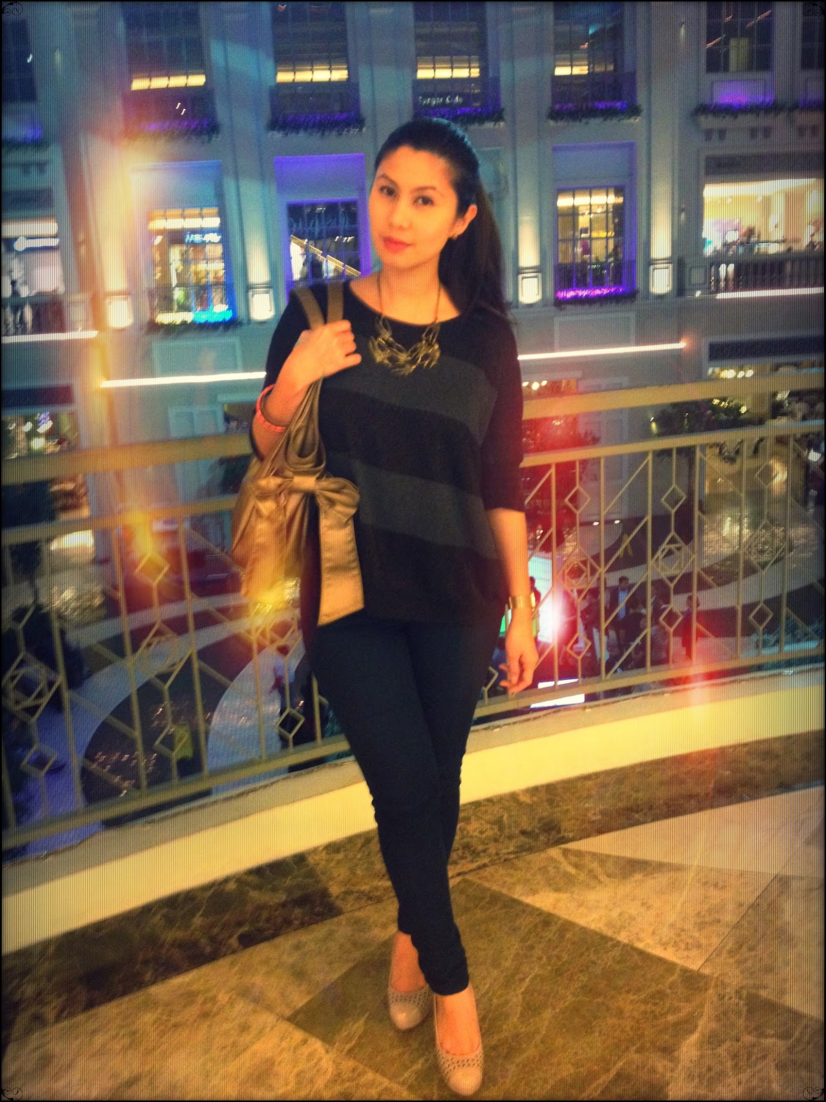 Bat Wing Sheer Top: Pasalubong from Bangkok (est. P300) Jeans: Forever 21 (SGD19 or approx. P630) Black Pumps: Charles & Keith (P1,999)